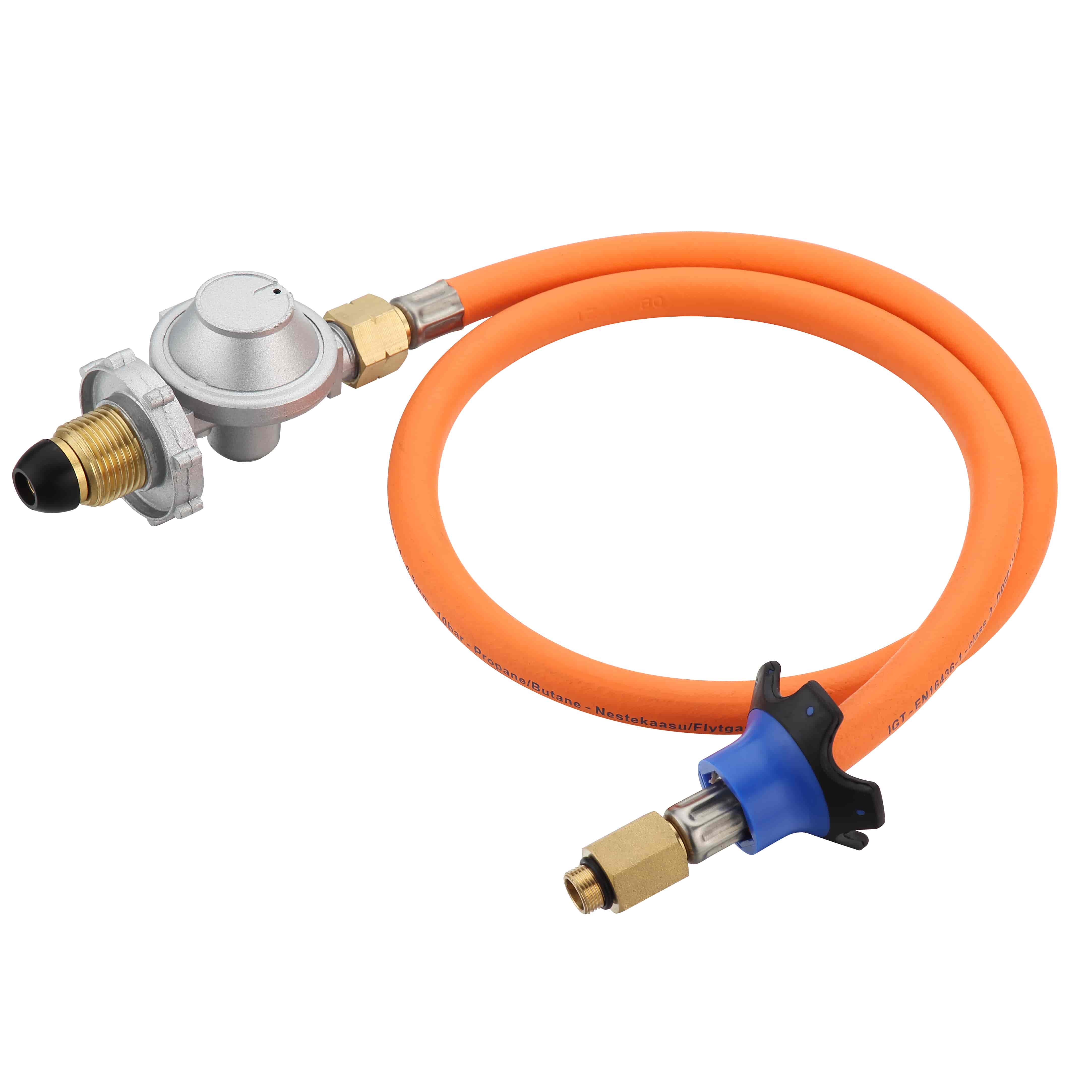 85cm Factory-Crimped Hose — Hose is crimped to the regulator at the factory for a secure, tamper-resistant connection that cannot work loose through vibration or repeated use.